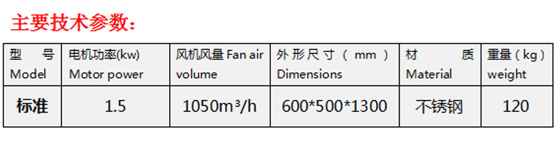 用途:本塑料吹干機適用于塑料造粒機拉條出來后通過水槽冷卻后,經過本機可對殘余水份的吹干作用。 特點: 1:機身不銹鋼材料焊接,有不生銹的特點。 2:優化設計,使用壽命長。 3:采用大盤高壓風機,強勁動力。
